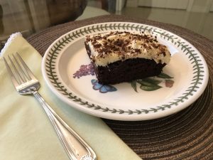 I made up this cake recipe for my mother who A. loves chocolate cake and B. eats Thin Mints by the sleeve. She said it turned out next-level delicious, and I tried it and have to humbly agree!! So if you have too many boxes of thin mints, here's a twist to use up a box!