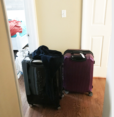 | Step Four: Realize you'll need those abandoned pancakes for energy, because her ginormous suitcases will sit in the perfect nexus of no less than FOUR entrances for those same few hours, making climbing into your bedroom, or office, or her bedroom or the hall... like scaling Mount Everest. |
