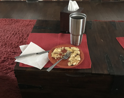 Step Three: Find those pancakes abandoned on the table for a few hours. |
