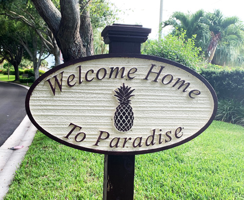 Did I show you the sign I see every day when I drive into my new neighborhood?